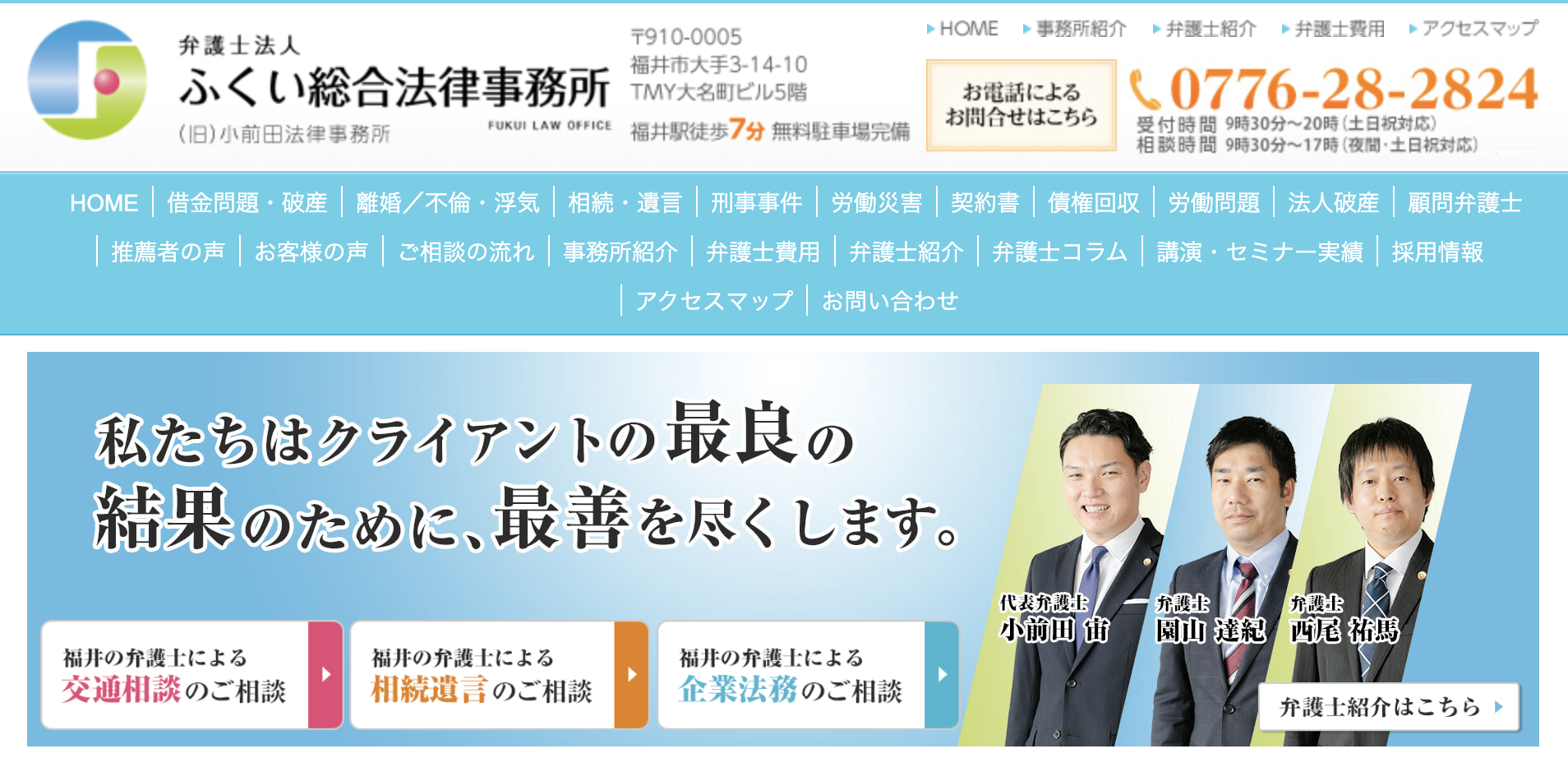 ふくい総合法律事務所は、専門性の高い具体的なアドバイスで相談者から厚い信頼を得ています。