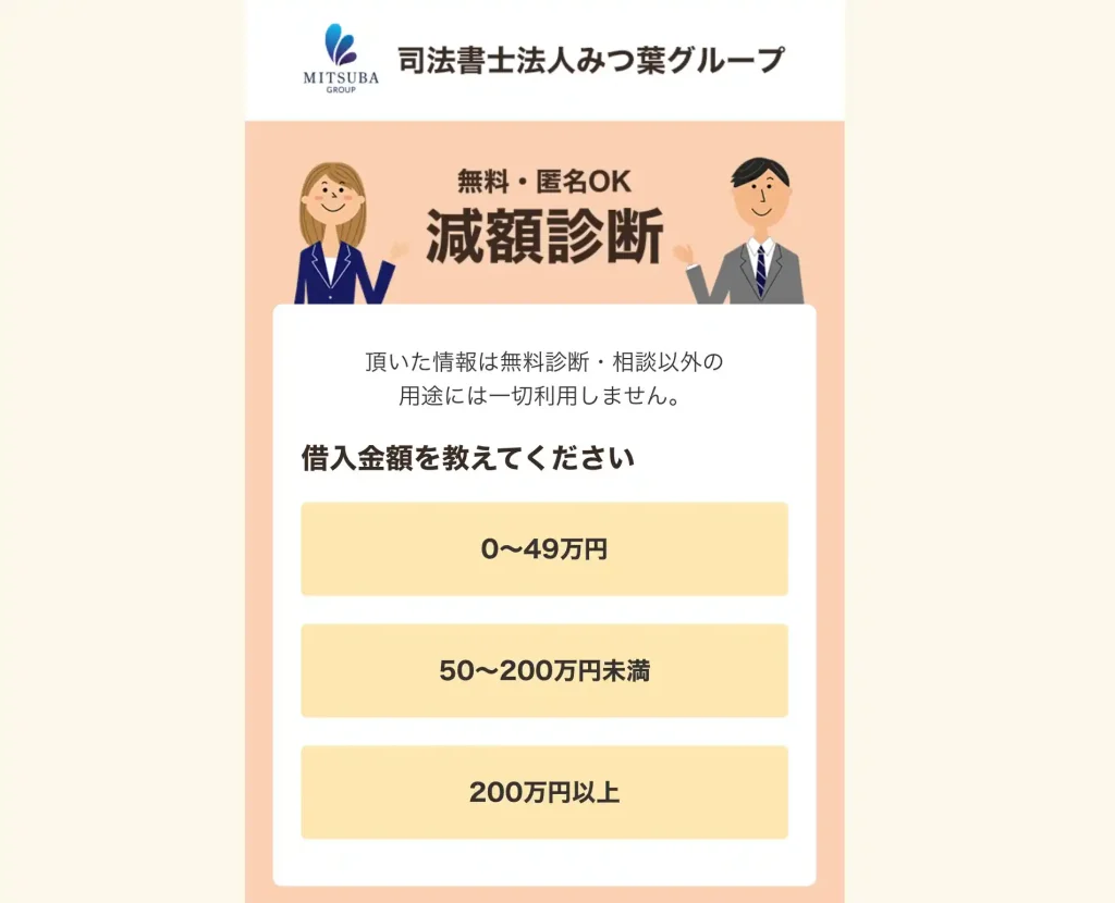 司法書士法人みつ葉グループの債務整理の費用について