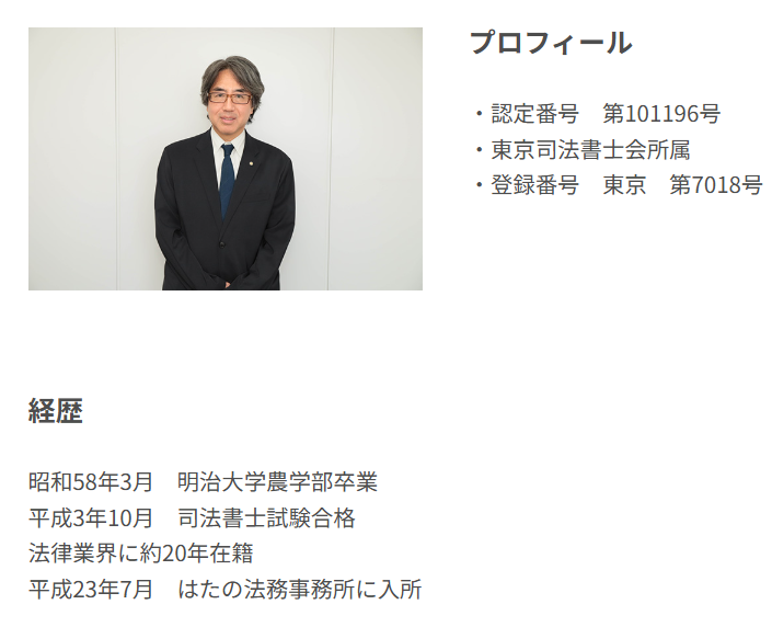 はたの法務事務所の主な司法書士