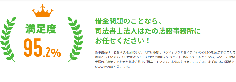 はたの法務事務所は、借金問題、特に債務整理や過払い請求に注力している司法書士事務所であり、50万件以上もの相談実績があります。
