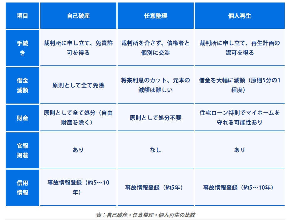 いずれも債務者の生活再建を目的とした制度であり、状況に応じて適切な方法を選ぶことが重要です。