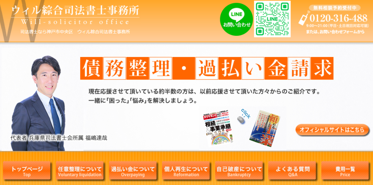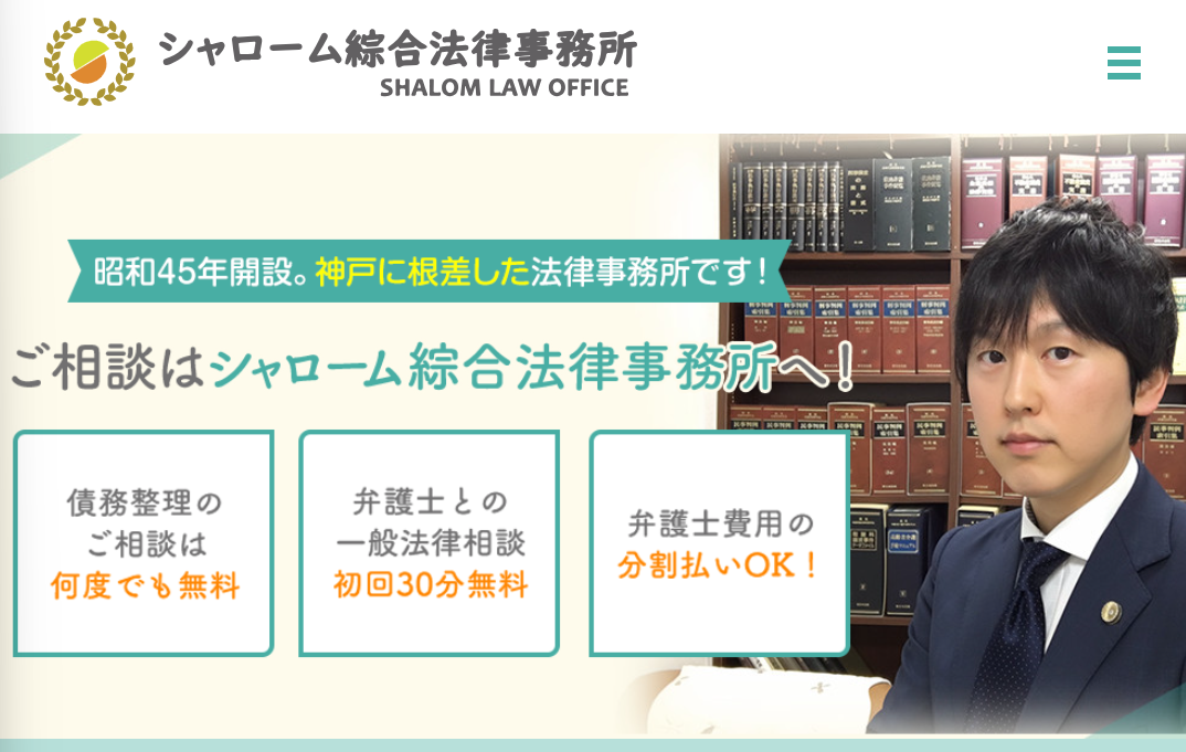 | 特徴 | 相談料無料、相談実績20万件以上、神戸含む全国出張相談可能、司法書士歴27年 |