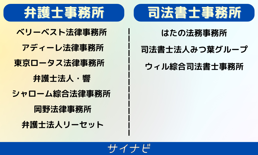 ここでは、相談実績や費用の明確さ、口コミの評価、相談しやすさといった観点から厳選した10の事務所をご紹介します。